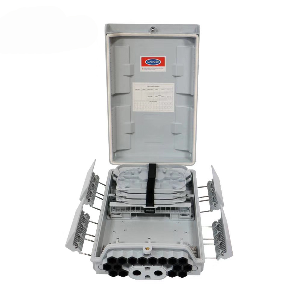 Clamping for feeder cable and drop cable, fiber splicing, fixation, storage, distribution...etc all in one.